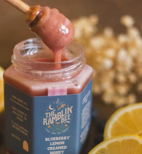 Bright, fruity, and irresistibly smooth—our Blueberry Lemon Creamed Honey from The Ramblin’ Bee is a delicious twist on traditional honey. Made with pure, raw Tennessee honey whipped to a creamy, spreadable texture, this blend brings together the sweetness of blueberries with the refreshing zing of lemon.