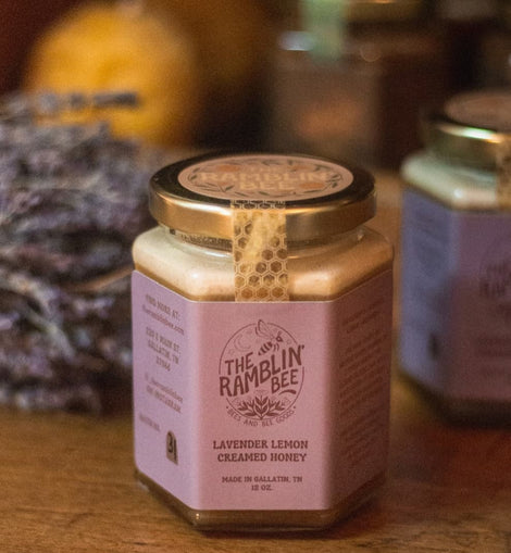 Relaxing, floral, and beautifully balanced—our Lavender Lemon Creamed Honey from The Ramblin’ Bee is a dreamy, small-batch blend crafted in Tennessee. Made from pure raw honey whipped into a smooth, spreadable cream, this flavor combines soothing lavender with a bright twist of lemon for a harmonious and aromatic taste.