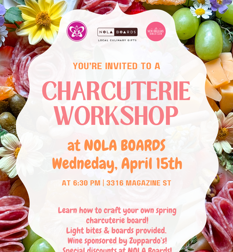 Join us for a festive and hands-on Spring Charcuterie Workshop at NOLA Boards in the heart of New Orleans! In collaboration with Sorrenteaux and the New Orleans Girls Club, this elevated experience brings together local flavor, creativity, and community.