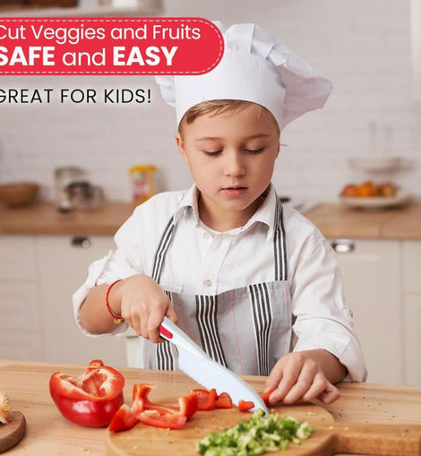 The Kids Safety Knife Set is designed to help children build confidence in the kitchen while keeping safety first. This 3-piece set features kid-friendly serrated edges that easily cut fruits, veggies, and soft foods—without the sharpness of traditional knives.