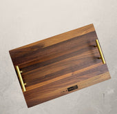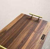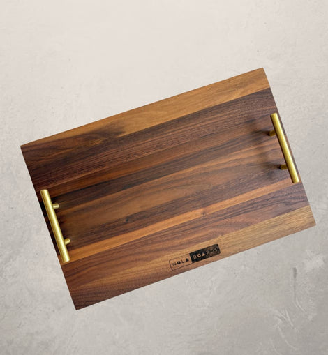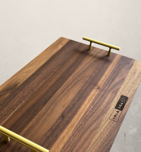 Crafted from rich walnut hardwood and finished with brushed brass handles, this serving tray blends timeless elegance with a touch of New Orleans soul. Its sleek design makes it perfect for carrying cocktails, serving small bites, or styling on your countertop or coffee table.