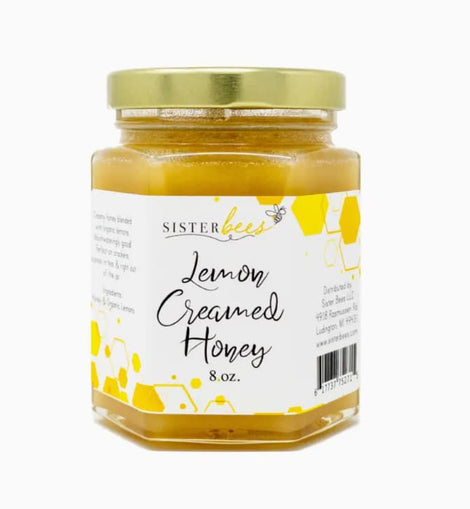 Our Lemon Creamed Honey is made with 100% pure honey and organic lemons. Only honey & lemon, nothing artificial! It's delightful on crackers, toast, English muffins, brie cheese, or straight out of the jar.