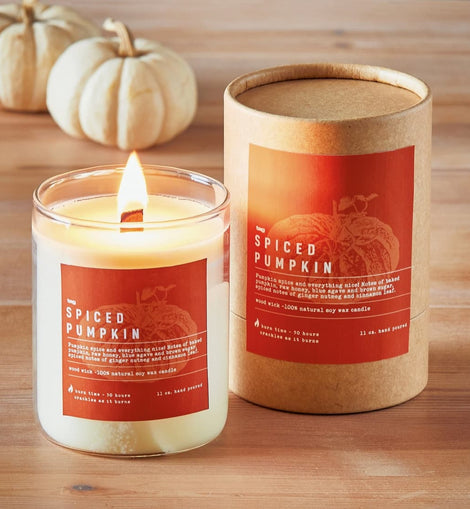 Fill your home with the comforting scent of autumn with our Pumpkin Pie + Spice Candle. Each candle is hand-poured using 100% soy wax and features a crackling cherry wood wick that adds warmth and ambiance to any space. Housed in a sleek glass vessel, this candle provides elegant illumination — perfect for cozy nights, fall entertaining, or thoughtful gifting.