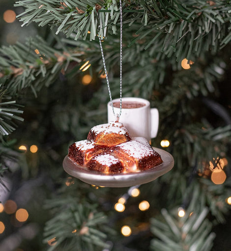 Celebrate a beloved New Orleans tradition with this charming Coffee & Beignets Ornament. Featuring a glittering plate of powdered-sugar–dusted beignets and a classic cup of café au lait, this realistic ornament captures the warm, cozy magic of a morning in the French Quarter. Perfect for adding Crescent City flavor to your Christmas tree, kitchen décor, or gifting to any food lover. A sweet keepsake for anyone who adores NOLA’s most iconic treat.