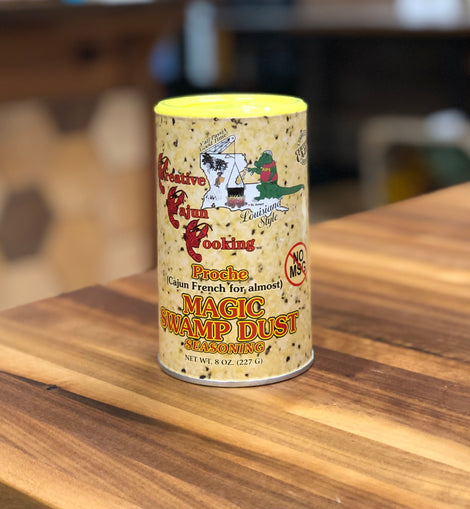Our Original Magic Swamp Dust seasoning has a lemon garlic pepper flavor profile. It can be used on anything from Grits & Eggs to Surf & Turf. Or just carry it with you to compliment any dish for that NEEDED "KICK" without the bite of red pepper.