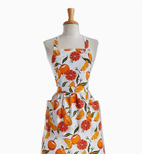 Bring a pop of sunshine to your cooking routine with this hand screen-printed apron, featuring a lively citrus orange design on vibrant cotton. Thoughtfully designed with adjustable neck and waist ties for a custom fit, plus two front pockets to keep tools or recipes close at hand.