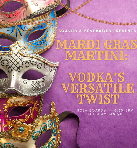 Get into the Carnival spirit with Mardi Gras Martini: Vodka’s Versatile Twist at NOLA Boards, 3316 Magazine Street, on Tuesday, January 20, 2026, from 6:30–8:00 PM.