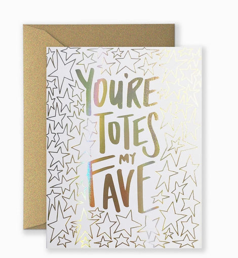 Features a fun, hand-lettered “You’re Totes My Fave” message