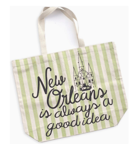 Isn't it though? Subtle green stripes and a simplistic illustration of the St. Louis Cathedral adorn this sweet NOLA tote.