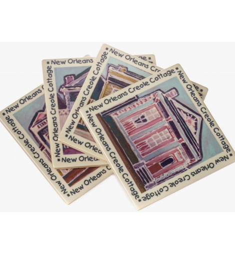 This set of coasters feature a different New Orleans creole cottage on each one. Dimensions: 4" X 4"
