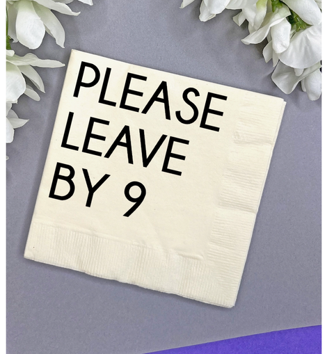 Our Please leave by 9 Cocktail Napkins will bring a smile to your guests face and say what you are thinking!