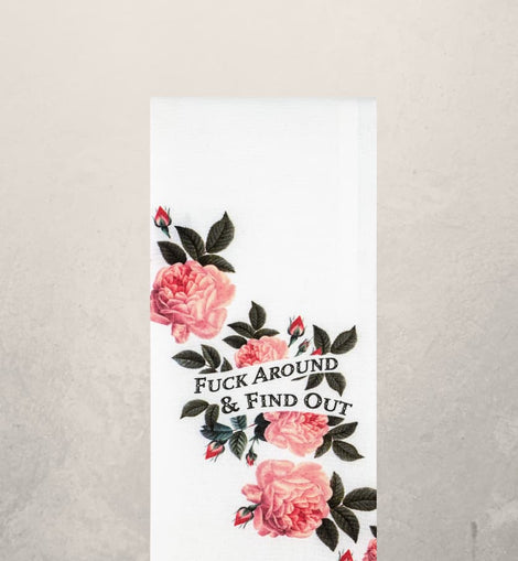 This “F*ck Around & Find Out” Floral Kitchen Towel blends soft, vintage-inspired roses with bold, unapologetic humor. It’s the perfect mix of pretty and sassy—making it a standout piece for any kitchen.