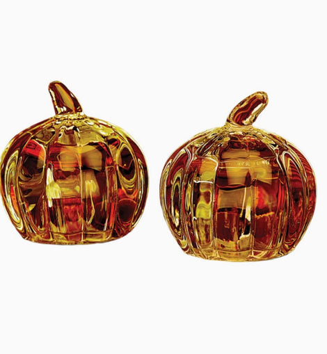 Bring autumn charm to your table with our Harvest Amber Pumpkin Salt & Pepper Shaker Set. Shaped like petite pumpkins in a rich amber hue, these shakers add the perfect seasonal touch to your fall gatherings, Thanksgiving dinner, or everyday table décor.