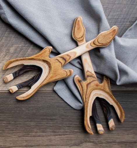 Strike the perfect chord at the table with these Guitar Salad Hands—a playful yet beautifully crafted serving set that blends artistry with function. Handcrafted from layered hardwoods, each piece features stunning natural grain patterns and a guitar-inspired silhouette that makes serving salad feel like a performance.