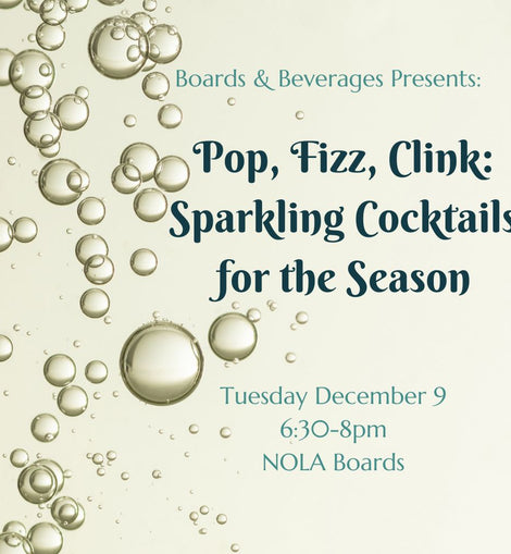 Celebrate the sparkle! Join us for Pop, Fizz, Clink: Sparkling Cocktails for the Season at NOLA Boards’ new location, 3316 Magazine Street, on Tuesday, December 9, 2025, from 6:30–8:00 PM.